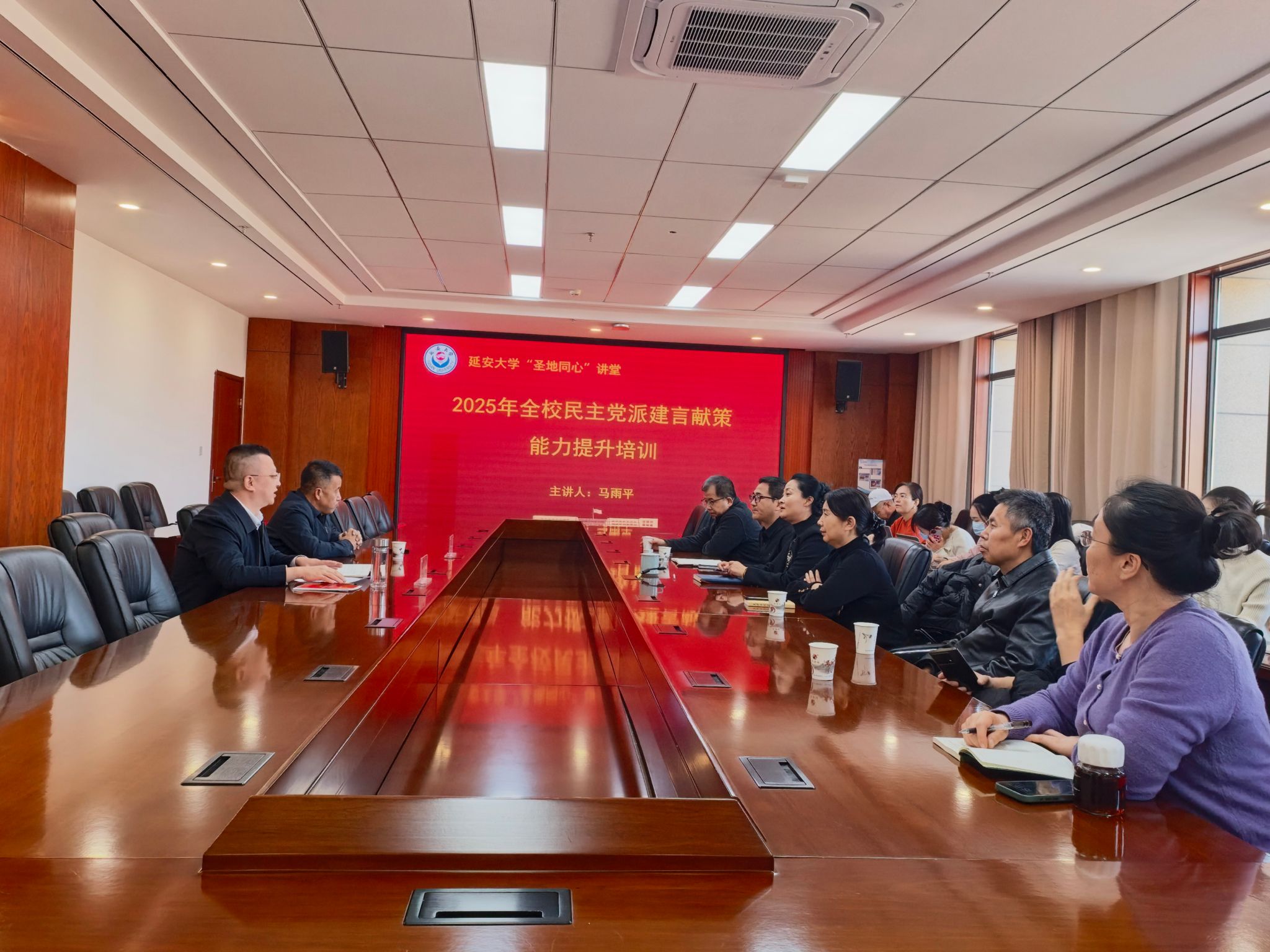 本网讯 为更好履行新时代民主党派成员参政议政、建言献策的职责,提升参政议政能力,12月23日下午,我校邀请民盟延安市委员会副主委、政协延安市六届常委、民盟中央参政党理论研究中心特邀研究员马雨平在行政楼七楼会议室作题为《建言献策能力提升培训》的专题培训。我校民革、民盟、民建、民进、农工党、九三学社、致公党等民主党派骨干成员30余人参加学习。报告会由党委统战部部长刘江主持。